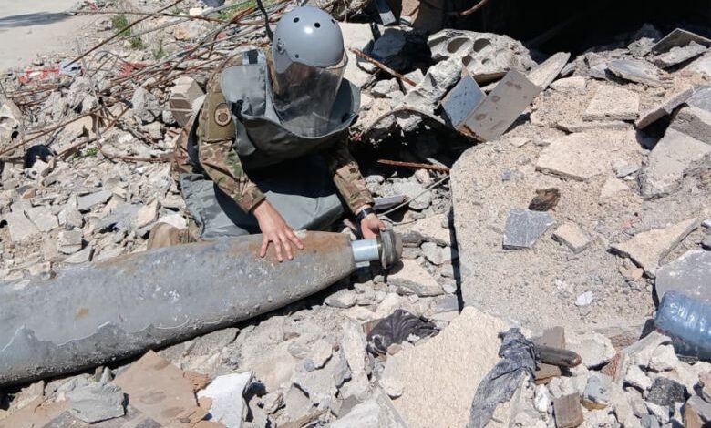 تفكیك 8 قنابل طیران غیر منفجرة من مخلفات العدوان الإسرائیلي