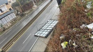 البترون: وأدّت سرعة الرياح الكبيرة إلى سقوط لوحة إعلانية من على جسر مستشفى البترون ما تسبب بسقوطها على الأوتوستراد على المسلك الشرقي .