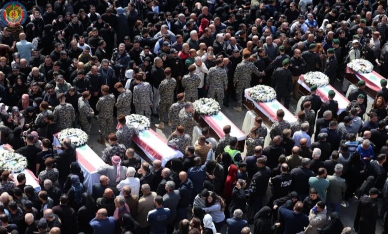 ثم شدد لاوندوس على أن “الشهداء الذين ارتقوا إلى مرتبة الخلود جراء استهدافهم من قبل العدو اثناء خدمتهم في مركزهم في سرايا النبطية كانوا على قدر المسؤولية كما عهدناهم دائماً رجالاً لا يعرفون التراجع ولا يساومون على كرامة الوطن”. وقال: “أيها الشهداء كنتم درع الدولة وسياجها ومثال الانضباط والتفاني، لم تغادروا مواقعكم رغم الخطر الداهم، وبدمائكم رسمتم حدود الكرامة وكتبتم صفحة مشرفة في التضحية الوطنية. خسارتنا كبيرة لكن عزاؤنا أكبر بأننا ننتمي إلى مؤسسة تنجب رجالاً إذا ناداهم الواجب لبوا دون تردد ، وإذا دعاهم الوطن قدموا أرواحهم فداءً له”.