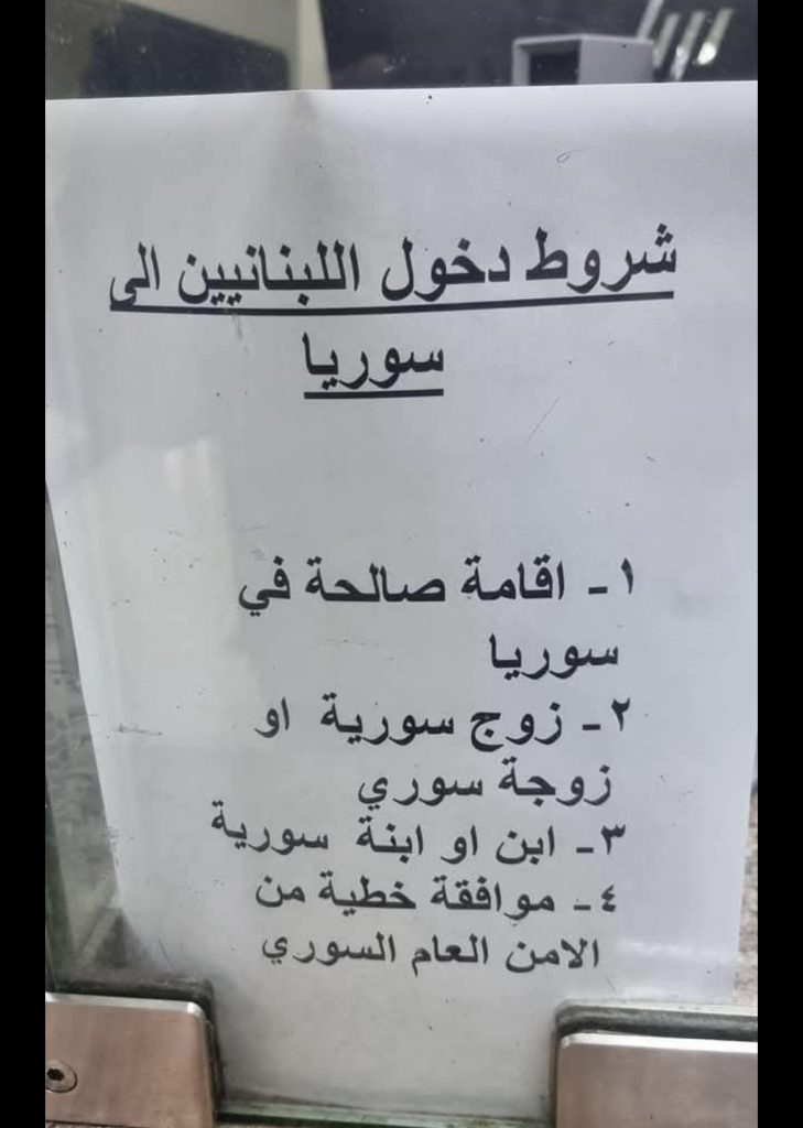 أوجبت الادارة الجديدة في سوريا شروطا جديدة لدخول اللبنانين إلى الأراضي السورية وهي: